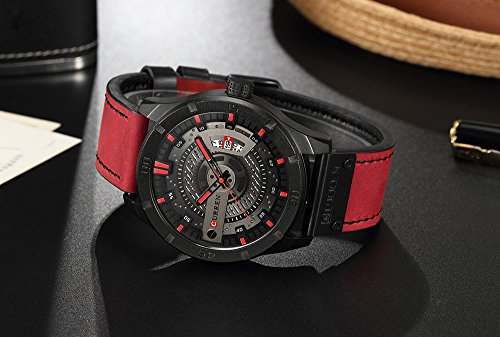 CURREN 8301 Top Brand Luxury Watch Men Date Display Cuero Creativo Relojes de Pulsera de Cuarzo Rojo