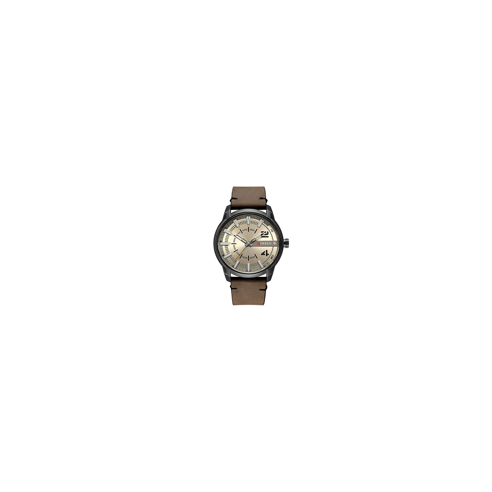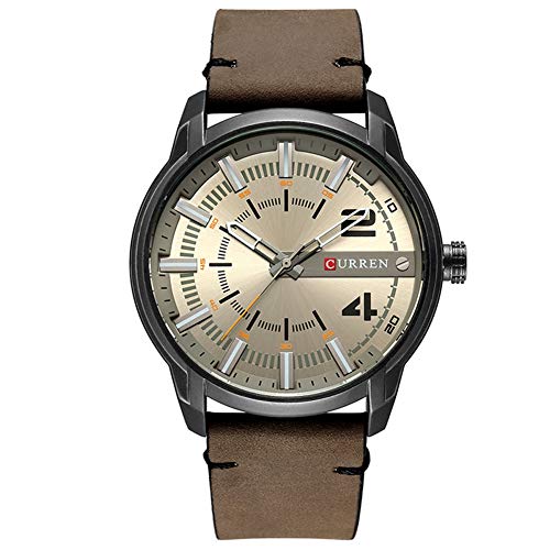 Curren 8306 – Reloj de pulsera para hombre, esfera redonda, analógica, correa de piel, cuarzo, color caqui