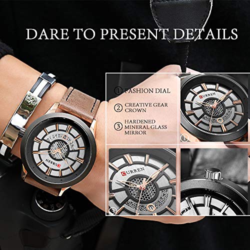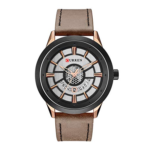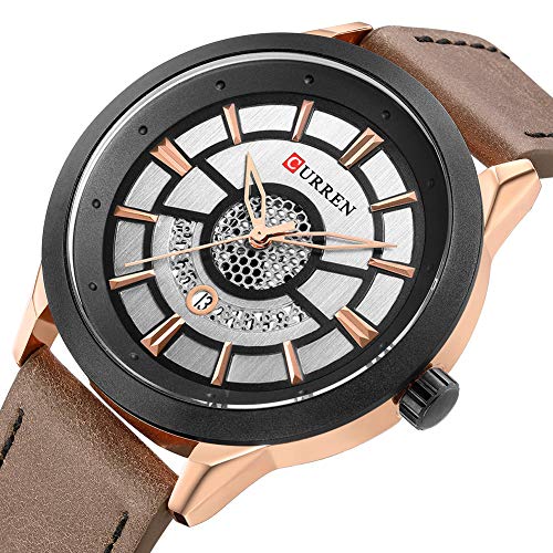 Curren 8341 – Reloj de pulsera para hombre, esfera simple, correa de piel, casual, cuarzo, color marrón