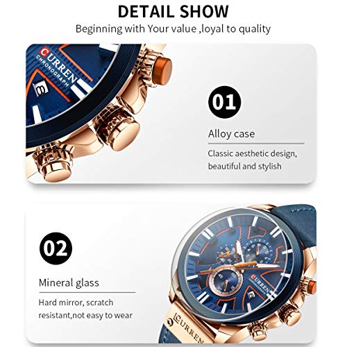 El espejo de cristal mineral resistente a los arañazos y la correa de piel sintética suave y transpirable garantizan una larga vida útil del reloj.