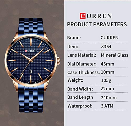 Curren 8364 – Reloj de pulsera para hombre, acero y cuarzo, color azul