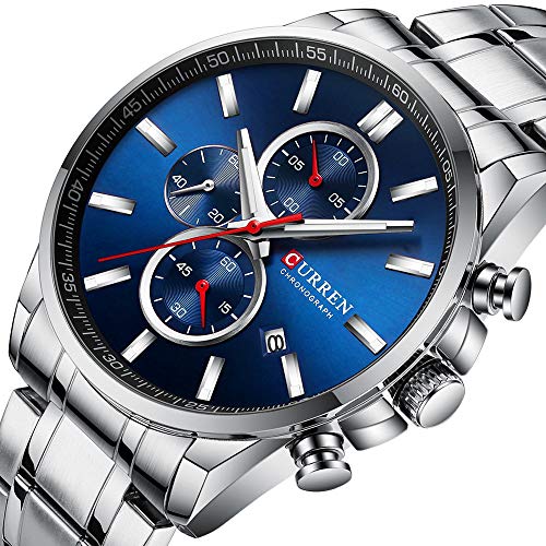 Curren 8368 – Reloj de pulsera para hombre, diseño de tres subesferas de fecha, cronógrafo, acero plateado, reloj de cuarzo