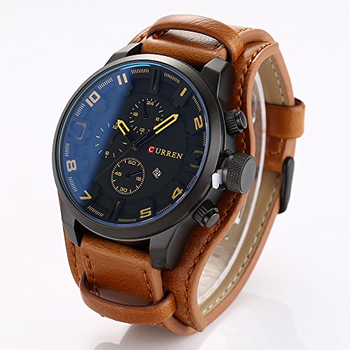 Más detalles: – Movimiento: Cuarzo Japonés; – Material de la Carcasa: Acero, – Móvil Forma: Redonda; – Dial material de la ventana: cristal; – Dial material: acrílico; – Dial Pantalla: Analógico; – Band Material: Piel Sintética; – resistente al agua: 30 m (no ajuste tiempo bajo el agua); – Duración de la batería: 18 meses en circunstancias normales; – Peso neto: 181 g;