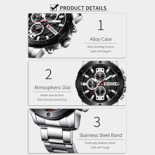 Este es un reloj de cuarzo resistente al agua de 3 ATM para hombres, movimiento de cuarzo preciso para una hora precisa. El reloj es adecuado para cualquier ocasión (al aire libre, negocios, fiesta), también es un gran regalo para familiares y amigos.