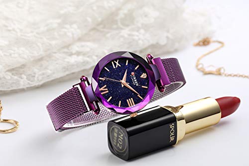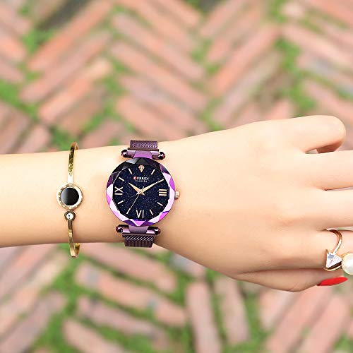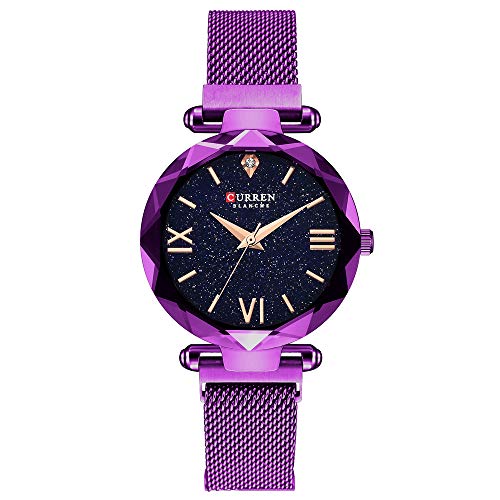 ►Material del reloj: cristal mineral de dureza, correa de acero de aleación ajustable, movimiento de cuarzo con pantalla analógica; diseñado para mujeres.